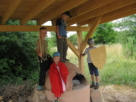 V plné zbroji u hliněné pece. Dnes se v ní chléb nepeče.